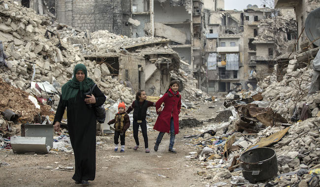 Dans la rue principale d’Ard-el Hamra (« la Terre Rouge »), un quartier d’Alep-Est sévèrement frappé par l’aviation russe et les pilonnages de l’armée syrienne, une foule de femmes en niqab attend devant un centre Caritas le début des distributions de coupons alimentaires « Nous avons décidé d’installer ce cette antenne au cœur d’Alep-Est parce que les besoins de cette zone sinistrée sont immenses, mais aussi parce que nous souhaitons donner un signe positif envers les civils qui ont vécu avec les insurgés » raconte Monseigneur Antoine Audo, archevêque chaldéen pour la Syrie et président de Caritas-Alep, à la délégation du nonce apostolique venu visiter le centre. Une meute d’enfants en guenille tourne autour des prélats.  Leurs pères ? « Morts, émigrés ou partis guerroyer dans les rangs de l’EI, de Jabat Al-Nosra ou des autres factions anti-régime » répond-t-on. Entre la visière des voiles, les regards des femmes sont mêlés de curiosité et de défiance. « Nombre d’entre elles n’avaient jamais vu ou fréquentés de chrétiens avant l’existence de ce centre » explique Monseigneur Audo, alors qu’une musulmane lui demande de bénir sa fille. « Les chrétiens auront un rôle à tenir dans la paix et la réconciliation des cœurs en Syrie. Aimer, pardonner… tout le défi du christianisme se joue ici ».