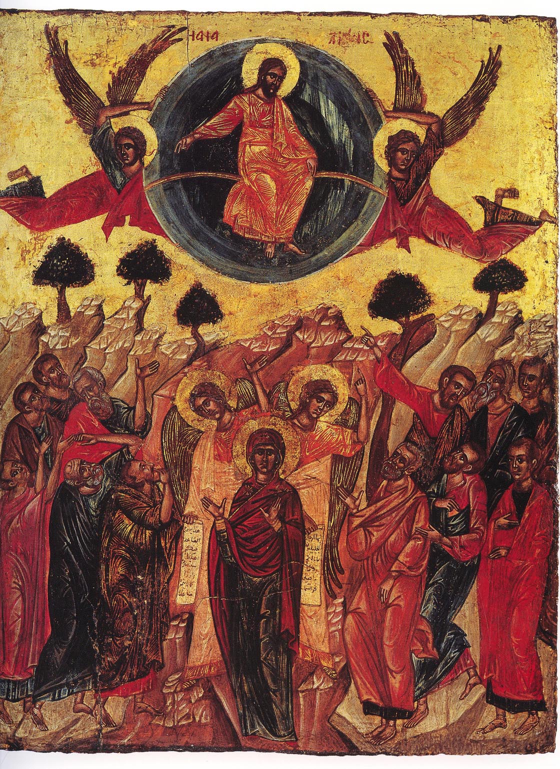 […] Seigneur qui remplis d’une ineffable joie, au jour de ton Ascension, tes disciples et la Mère de Dieu […] (doxastikon du lucernaire).