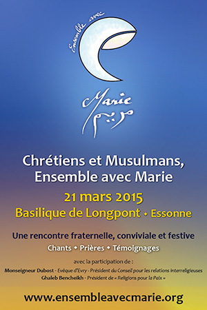 Le 21 mars 2015, nous nous retrouvons ensemble, chrétiens et musulmans, lors d’un rassemblement fraternel pour dire notre amour à Marie. Cet événement sera une célébration, où chacun pourra prier, chanter et vénérer Dieu par Marie. Il sera ponctué d’interventions de représentants de chaque communauté.