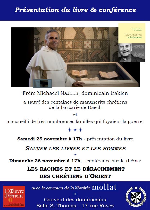 Frère Michaeel NAJEEB, dominicain irakien a sauvé des centaines de manuscrits chrétiens de la barbarie de Daech et a accueilli de très nombreuses familles qui fuyaient la guerre.