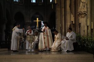 Dimanche 14 mai, le patriarche a déjeuné avec Mgr Pascal Gollnisch et Vera Baboun, ancienne maire de Bethléem et lauréate de notre Prix littéraire. Le patriarche a ensuite présidé la messe annuelle de l’Œuvre d’Orient à Notre-Dame de Paris, célébrée en rite copte cette année. À cette occasion, 12 enfants ont fait leur première communion.