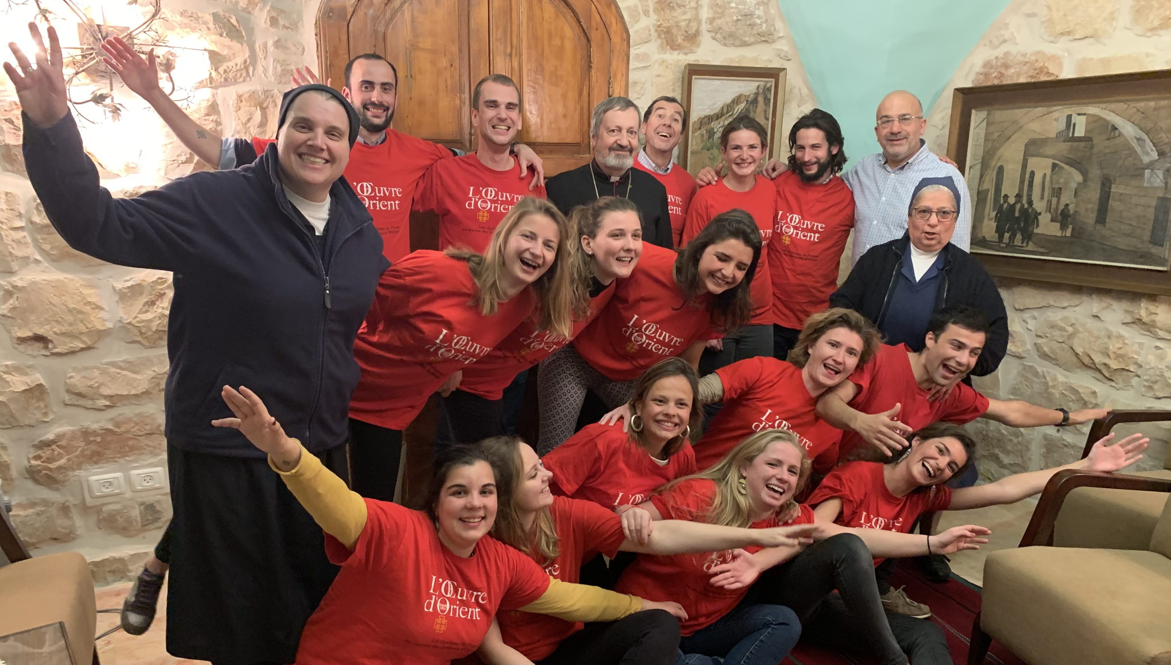 Pour la seconde année du Pôle Jeunes, je me suis rendu en Terre Sainte pour entendre et voir nos volontaires, écouter les communautés qui les accueillent et rechercher de nouveaux postes pour des volontaires nouveaux, si les candidatures continuent à se multiplier. J’y ai fêté le second anniversaire de la création du Pôle Jeunes de l’Œuvre d’Orient avec Mgr Gollnisch venu lui aussi rencontrer les autorités religieuses et civiles locales (voir photo jointe)