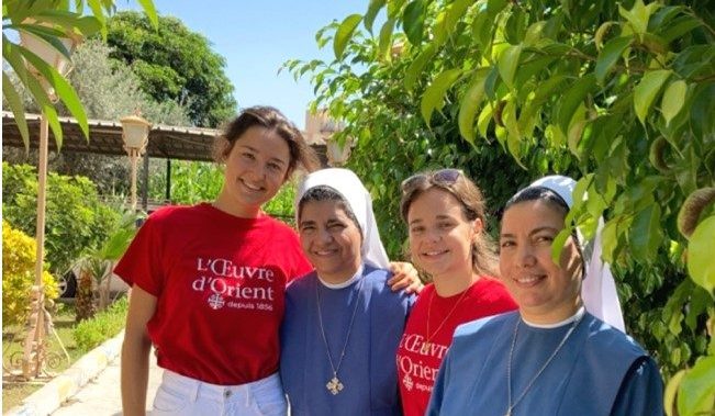 Nous prenions tous nos repas avec elles et ce sont des moments de partage privilégiés. Autrement, on ne les voit pas. Elles ont toutes une mission qui leur est attribuée par la congrégation des sœurs (responsable du monastère, de l’école, comptable, cuisine…). Elles sont une petite dizaine. Parfois elles partent et d’autres arrivent (pour des missions ailleurs ou temporairement pour des retraites). Voici une liste des sœurs les plus présentes lors de mon séjour (non exhaustive) : sœur Paula, sœur Elizabeth et sœur Sophie (les trois sœurs les plus rieuses et drôles, qui ont beaucoup rigolé avec nous et avec qui j’ai tissé le plus de liens), sœur « Sourire » (nommée comme ça parce qu’elle a un grand sourire lumineux, elle a 26 ans) et sœur Rania (toutes deux responsables des repas délicieux), sœur Germaine (83 ans), sœur Baracka (responsable du monastère), sœur Veronia (en études de psychologie), sœur Pouline (responsable de l’école, toujours aux petits soins pour que nous soyons au mieux possible).