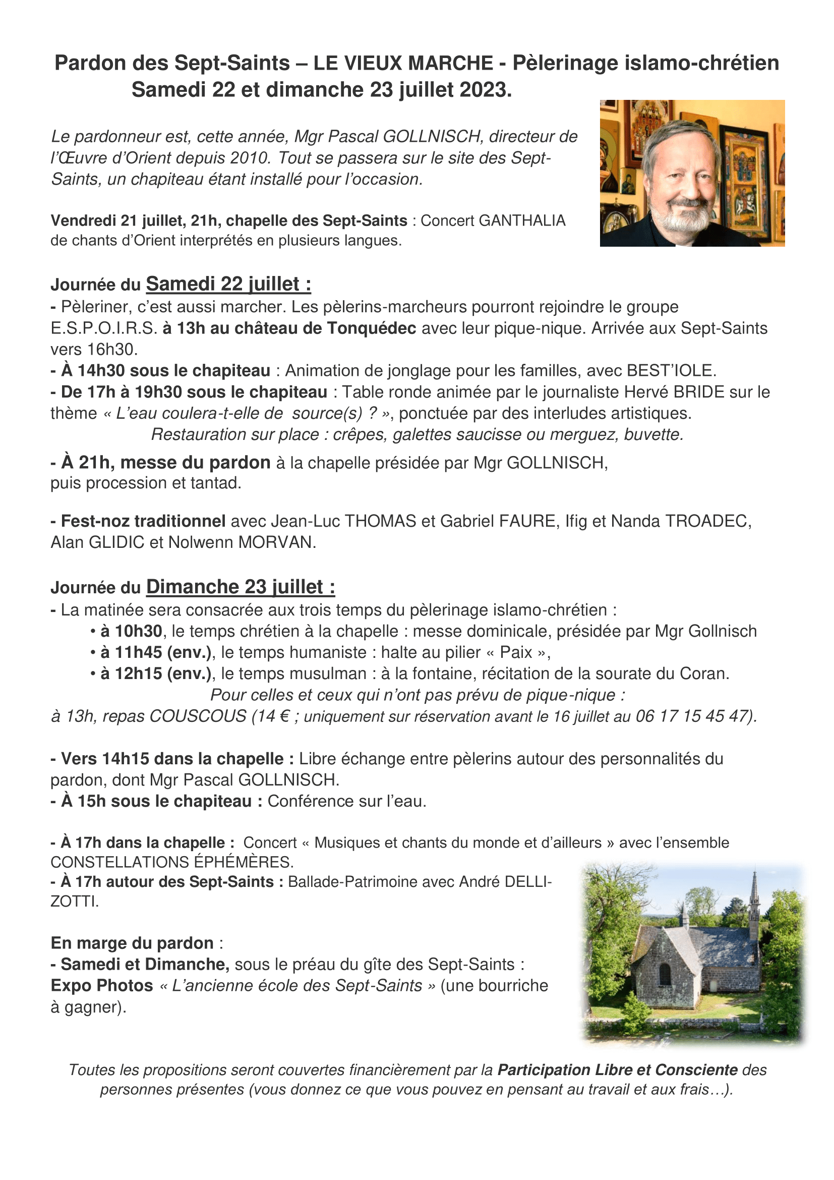 Le Pardon rassemble des fidèles catholiques et musulmans, dans le sillage du dialogue islamo-chrétien promu par Louis Massignon. Il est bâti sur le schéma traditionnel d’un pardon breton. Il a lieu chaque année au mois de juillet, sous l'égide d'un pardonneur différent.