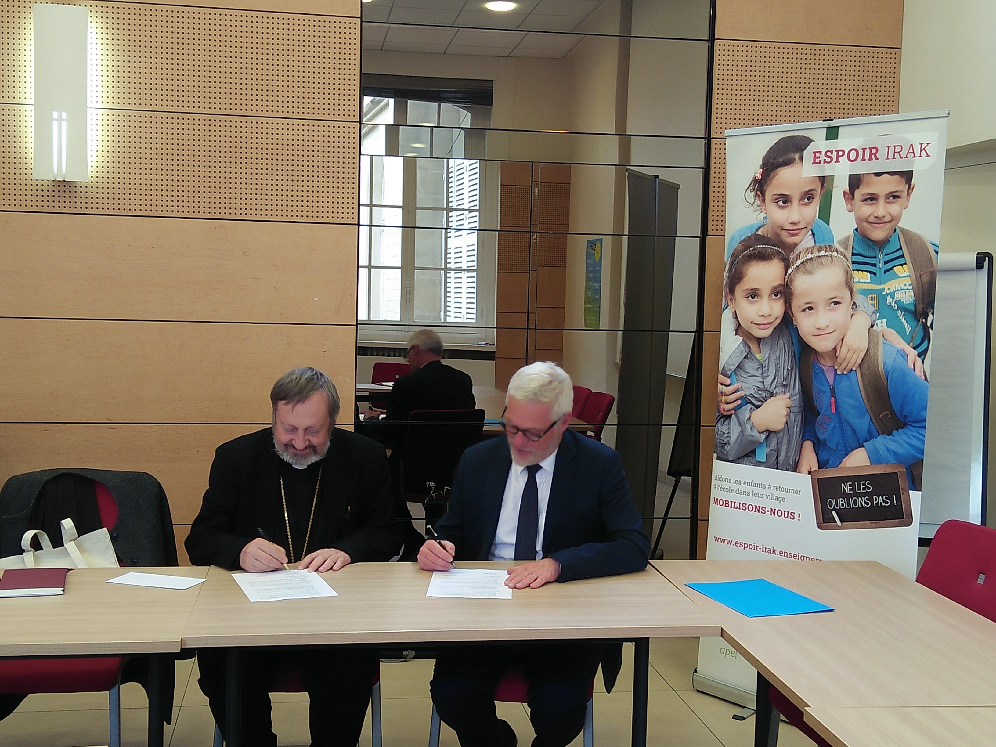 À cette occasion il a été remis à l’Œuvre d’Orient un chèque de 100 000 €, fruit de la campagne Espoir Irak (lancée en 2014), menée au cours de l’année scolaire par le SGEC et l’APPEL auprès des établissements scolaires, pour financer la construction d’une école tenue par les dominicaines à Bartella en Irak.
