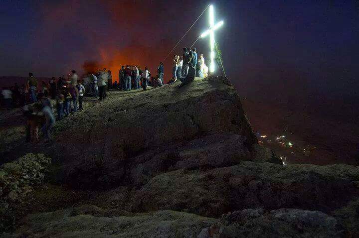 Maaloula est célèbre au Proche-Orient pour la ferveur et la solennité avec lesquelles il célèbre chaque 14 septembre la fête de l’Exaltation de la Sainte-Croix. On allume de grands feux sur les collines, on installe trois croix sur le rocher de chaque confession chrétienne, et cette année on a même fabriqué une aura qui est tout en feu et plantée devant la croix.