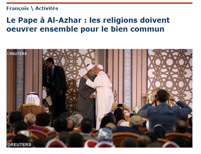 Le Pape à Al-Azhar : les religions doivent oeuvrer ensemble pour le bien commun