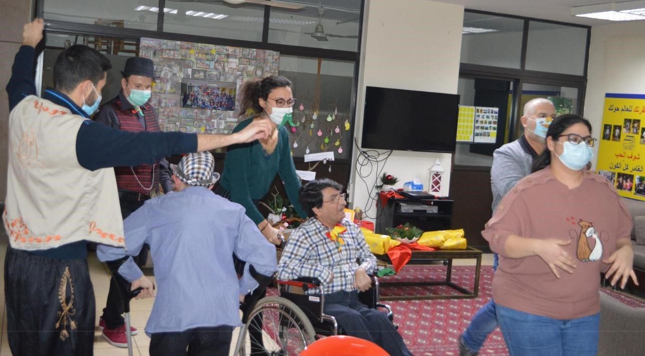Yallah ! Hier, j’ai commencé à accompagner les personnes dans leur quotidien, enfin ! Ca fait de bien de pouvoir être en contact avec les jeunes. Il a fallu être patient, mais c’est parti, je suis lancé et bien content de pouvoir mettre la main à la pâte dans cette grande Maison de Tendresse. La matinée s’est ponctuée par le levé des jeunes, leur petit-déjeuner et leur toilette. Ensuite, notre groupe s’est réuni pour un atelier de discussion sur le thème de Noël, la manière dont nous préparons nos cœurs et la joie que nous donne la fête de la naissance de Jésus. Encore une fois un des accompagnateurs nous a gentiment traduit tout l’échange. Nous avons ensuite déjeuné avant d’accompagner les jeunes pour la sieste. Après s’être reposés, les jeunes prennent une collation avant de rejoindre la chapelle d’Anta Akhi pour le chapelet, me voilà donc en plein apprentissage du « Je vous salue Marie » en Libanais. Le chapelet est particulièrement touchant ici, et Anta Akhi porte une grande dévotion à Sainte Marie. Je vous partage la prière qui m’a profondément émue, elle est dite pendant le chapelet :