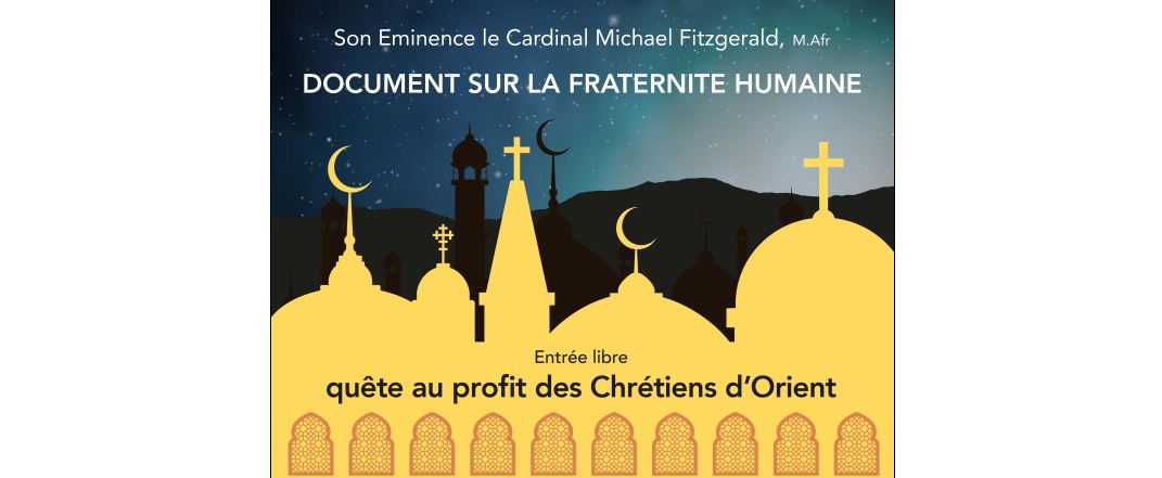 La conférence – prononcée en français – présentera le Document sur la fraternité humaine pour la paix mondiale et la coexistence, document signé à Abou Dhabi le 4 février 2019 par le pape François et le Grand Imam d’al-Azhar, le Dr Ahmad al’Tayyeb. Cardinal Fitzgerald signalera les antécédents du document, en indiquera le contenu, et essaiera d’en évaluer son importance. Informations : http://bit.ly/30Mars2020