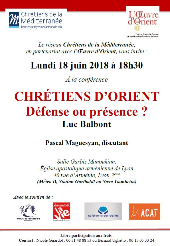 La conférence est organisée par le réseau Chrétiens de la Méditerranée, en partenariat avec l’Œuvre d’Orient.