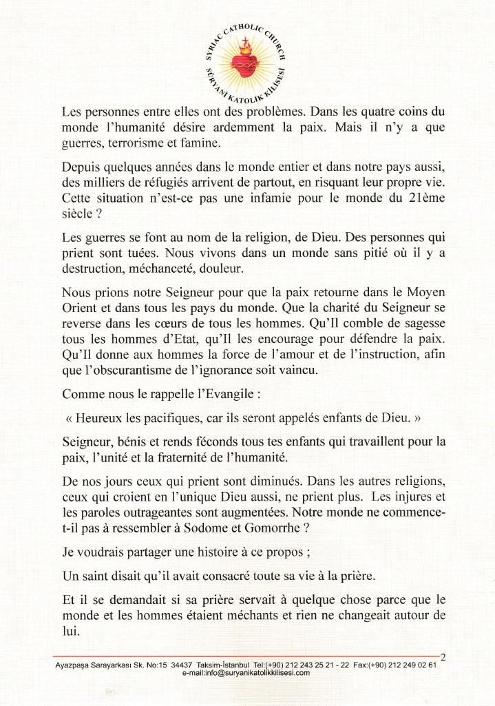 Prions pour une paix durable, cordiale et sincère, une volonté tenace d’écouter et de parler avec le désir dans le dialogue et le respect des autres,