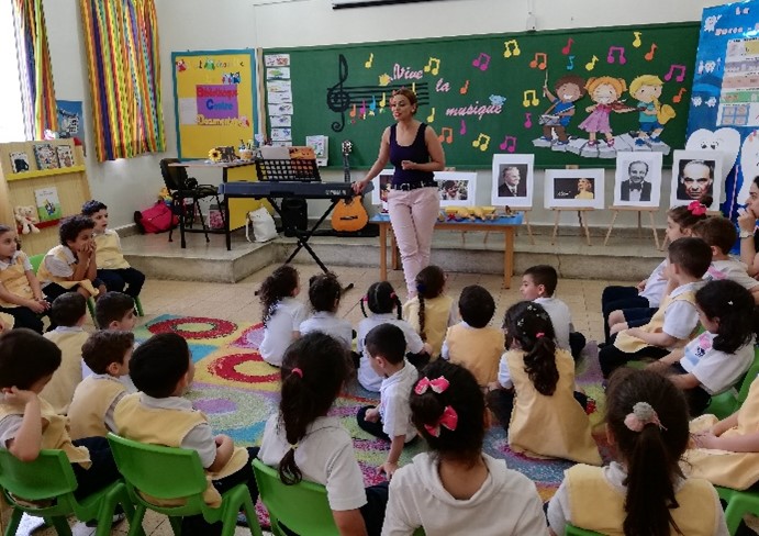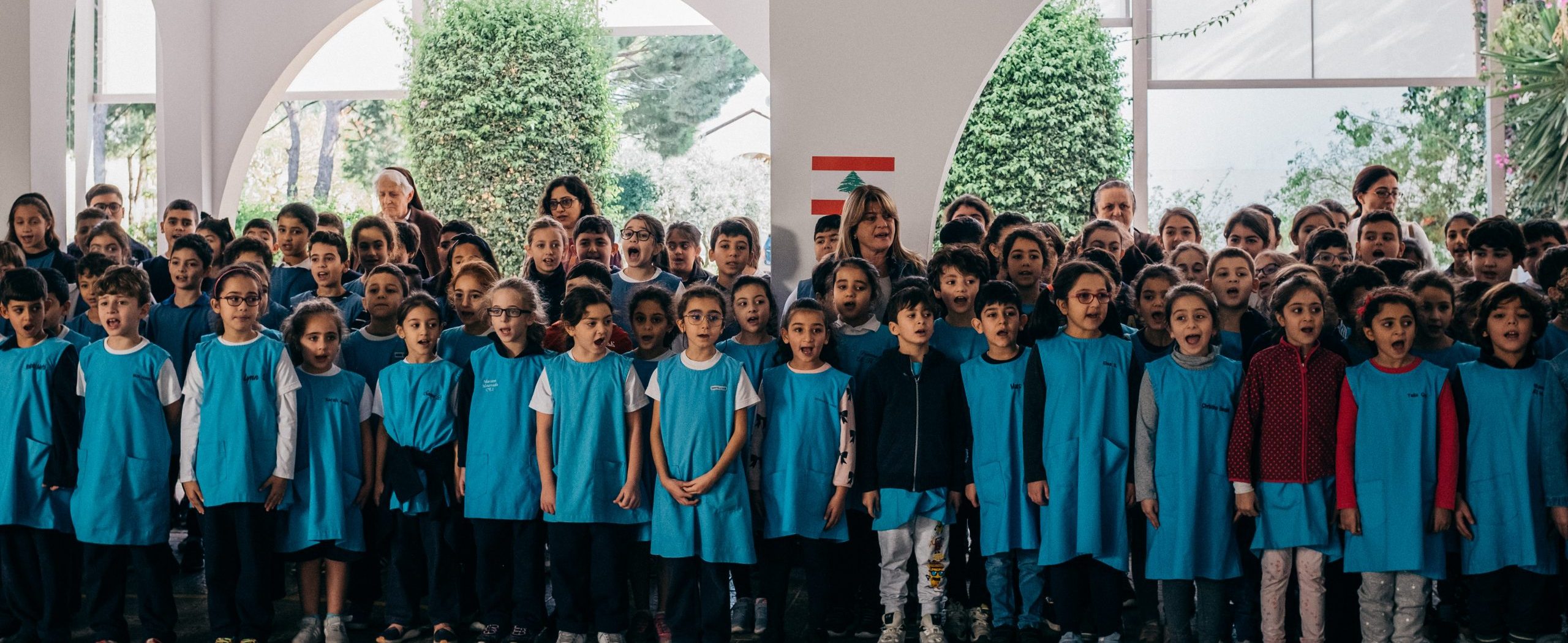 21 novembre 2019 : Enfants de l’école du Carmel Saint Joseph, lors d’un spectacle donné à l’occasion de la fête d’indépendance du Liban. Mechref-Damour. Liban.