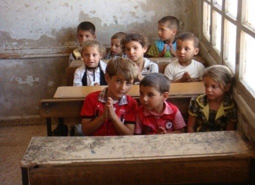 19 novembre 2019: Centre d’alphabétisation St Raphaël, venant principalement en aide aux enfants réfugiés d’Irak et de Syrie. La plupart des enfants ont été déscolarisés depuis longtemps. Ici, ils réapprennent certaines bases avant, soit de réintégrer le système scolaire, soit d’émigrer en Australie, au Canada ou dans d’autres payes. Beyrouth – Bouchrieh. Liban