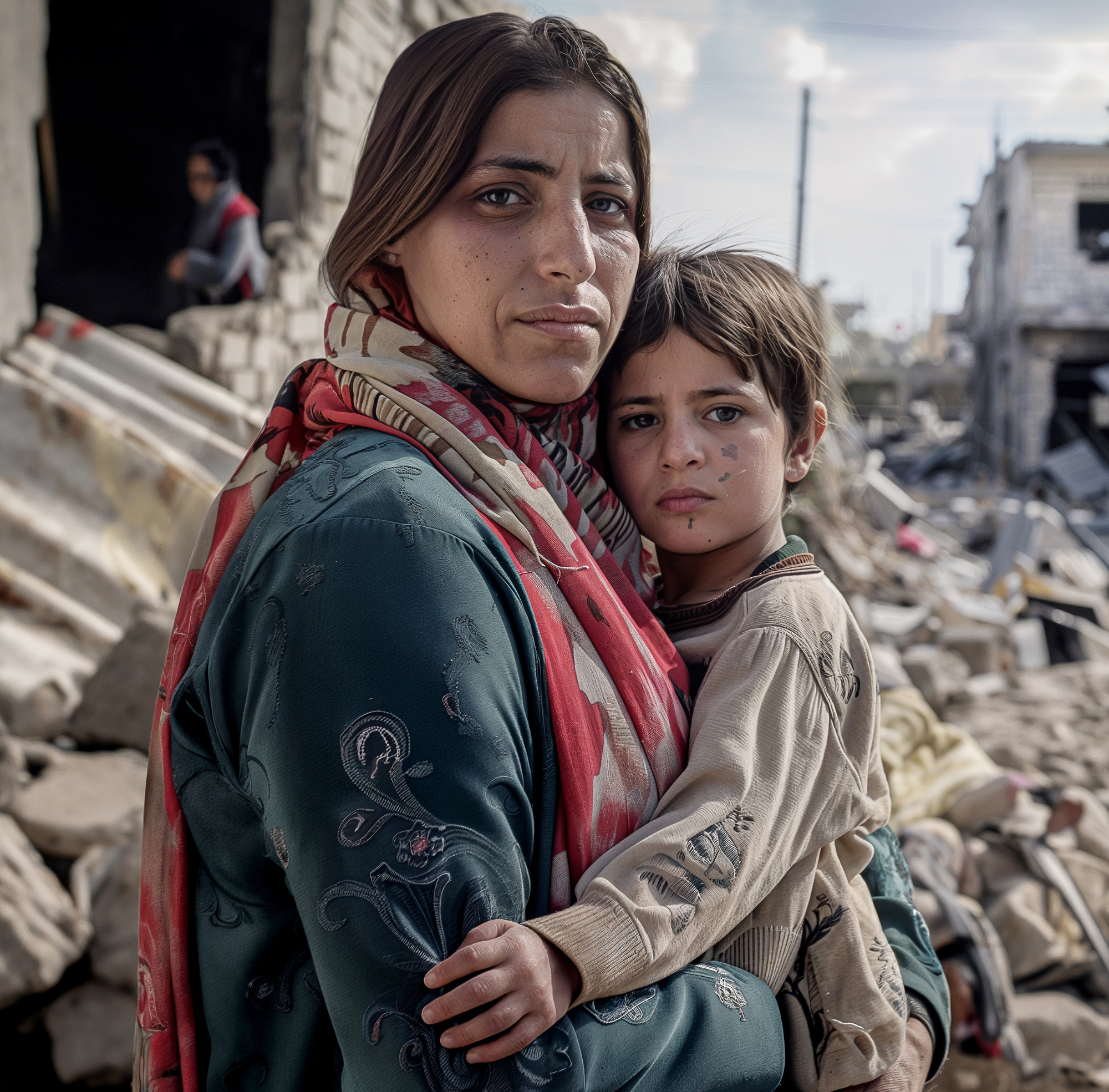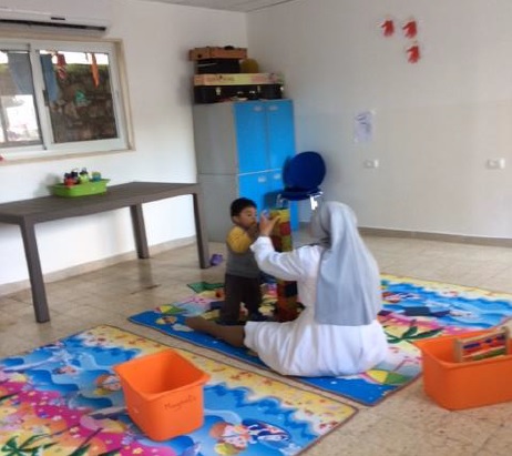 21 December 2023: Sister Denise, a Lebanese nun from the Congregation of the Daughters of Charity, in charge of the Holy Family creche, with a child. Bethlehem. West Bank.