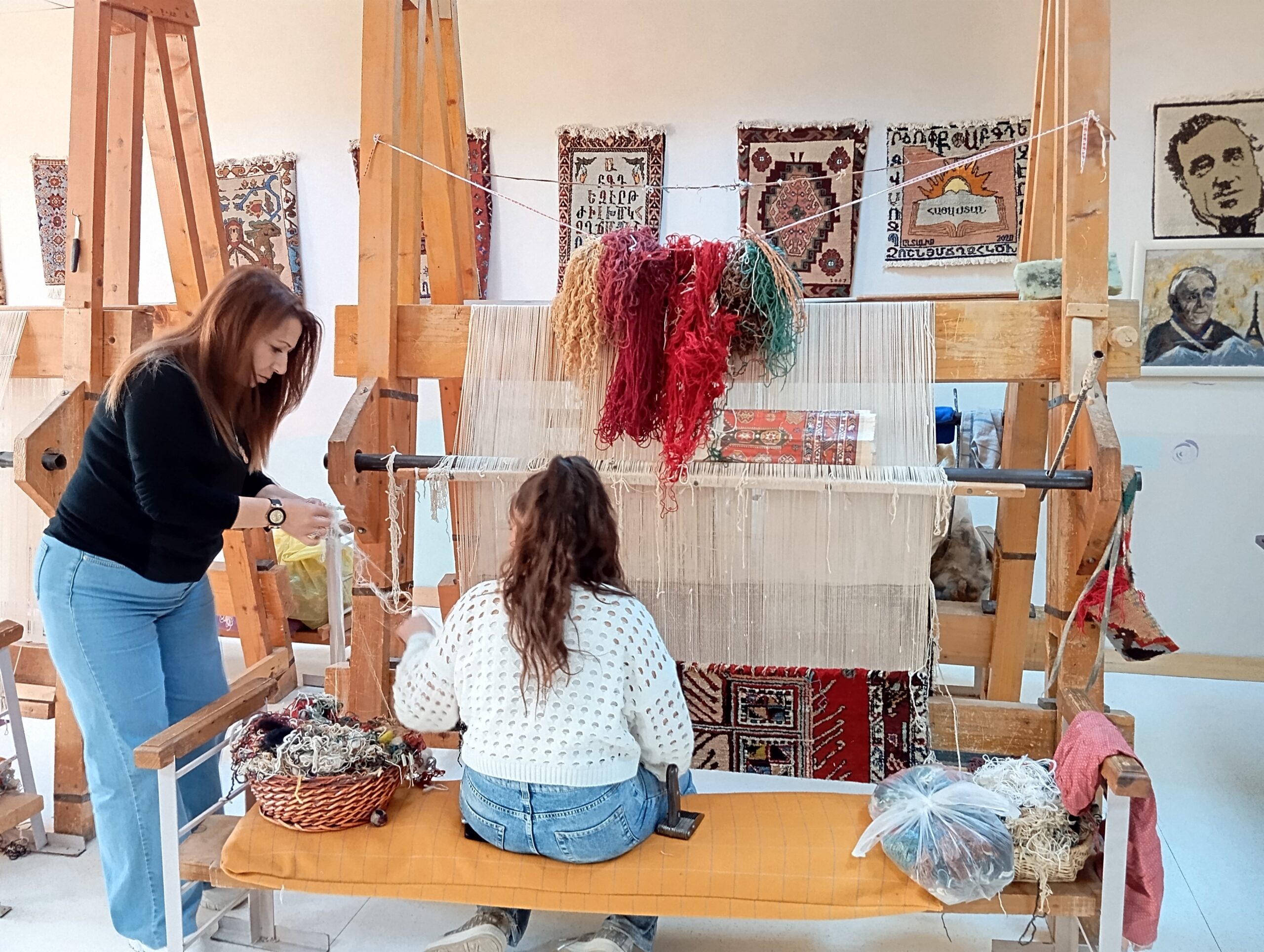 Voyage de grands donateurs de L’uvre dOrient, organisé par le Service développement, avec le soutien de la banque OddO, du 5 au 13 novembre 2024. Visite du Centre Entanik de Gyumri, centre de formation professionnel pour jeunes adolescents (joaillerie, menuiserie, cuisine…) Métier à tisser.