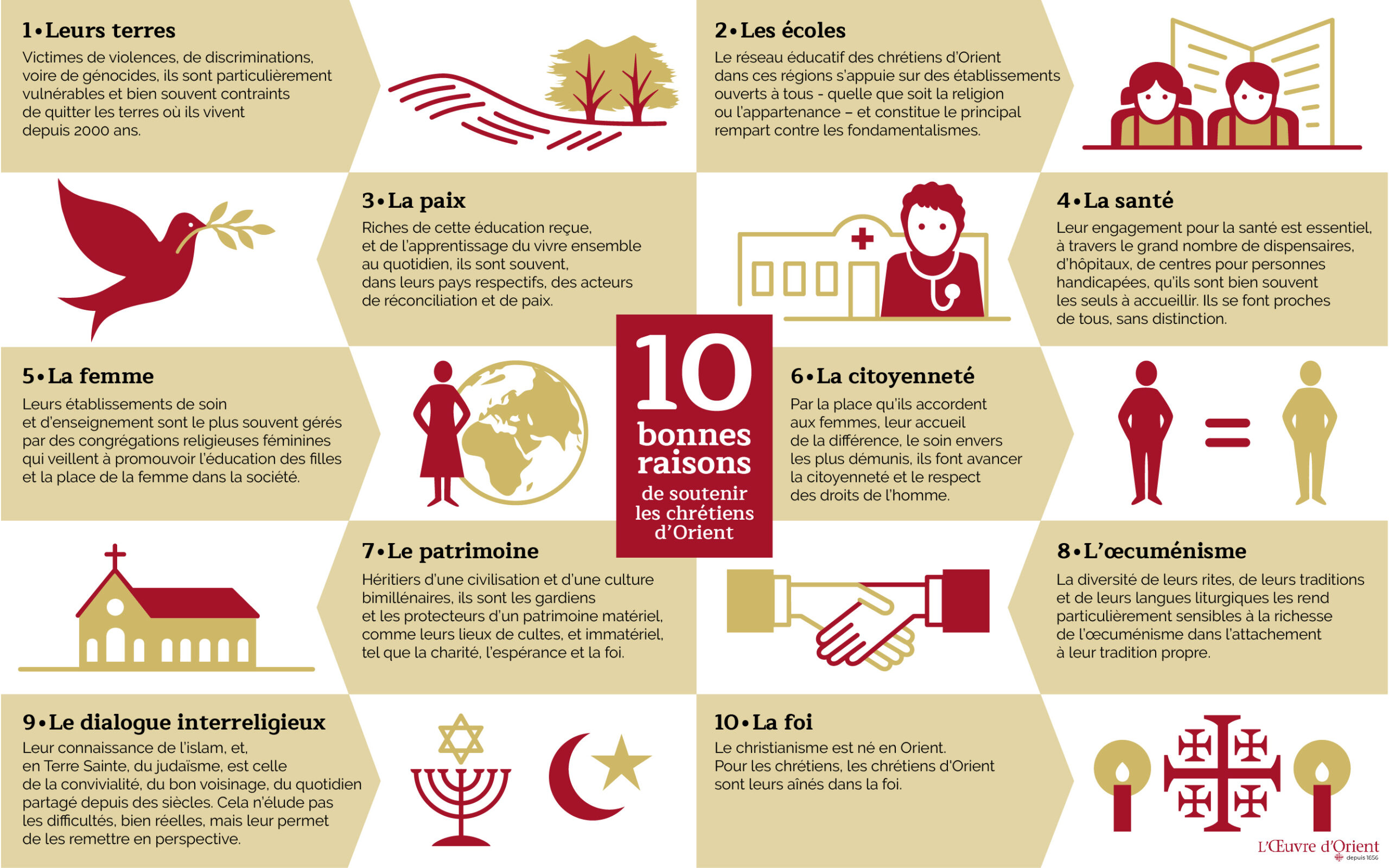 L’Œuvre d’Orient agit en faveur du patrimoine du christianisme oriental en le protégeant sur place et en le faisant connaître en France. Il est le témoin de l’enracinement et de la légitimité des chrétiens dans les sociétés orientales.