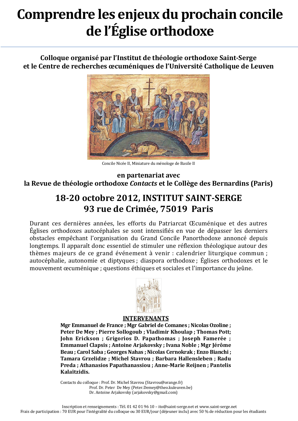Paris : Colloque international "Comprendre les enjeux du prochain Concile de l'Église orthodoxe"