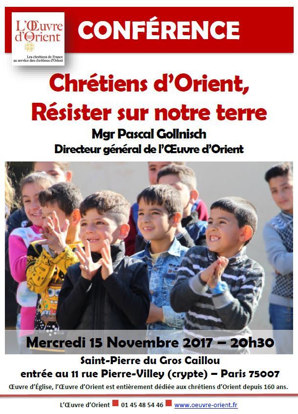 Paris : Conférence de Mgr Pascal Gollnisch "Chrétiens d'Orient, résister sur notre terre" mercredi 15 novembre