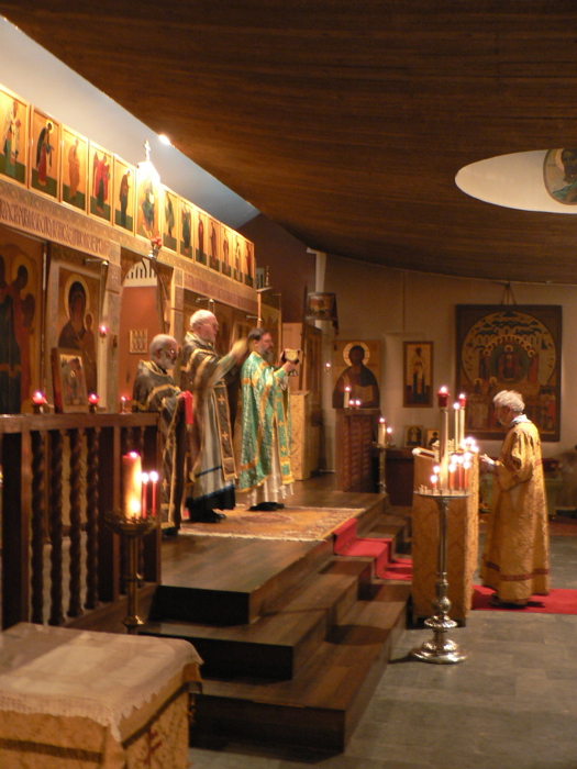 Les vêpres de l’agenouillement sont un office très particulier du rit byzantin. Au milieu des différentes pièces de l’office ordinaire des vêpres sont insérées trois longues prières où tout le monde, clercs & fidèles, est agenouillé. Cette coutume, dont les prémices sont décrits dès le IVème siècle à Jérusalem par le récit de la pèlerine Egérie, est attestée au début du Vème siècle. Les vêpres de l’après-midi de la Pentecôte sont de fait celles du lundi (le jour liturgique commençant la veille au soir), et cet agenouillement solennel marque la fin de la cinquantaine pascale, longue célébration sur 50 jours de la résurrection du Christ, en l’honneur de laquelle on se tient droit et où l’on s’abstient de s’agenouiller (cf. canon 20 du concile de Nicée de 325).