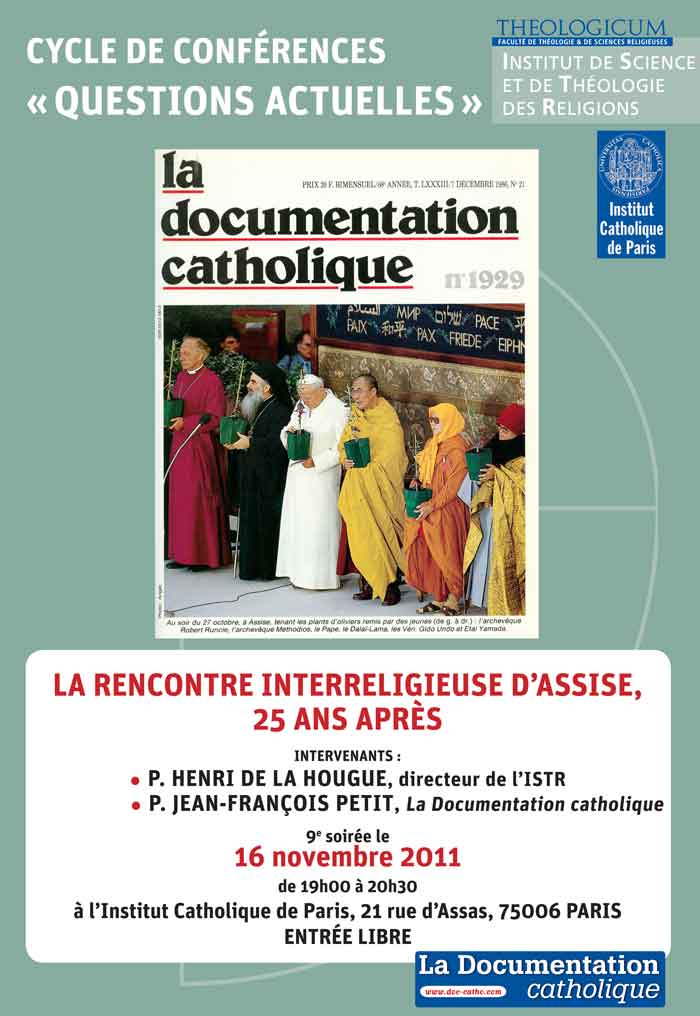 Paris : Rencontre "1986 - 2011, l'Esprit d'Assise, Force spirituelle, Force de Paix"