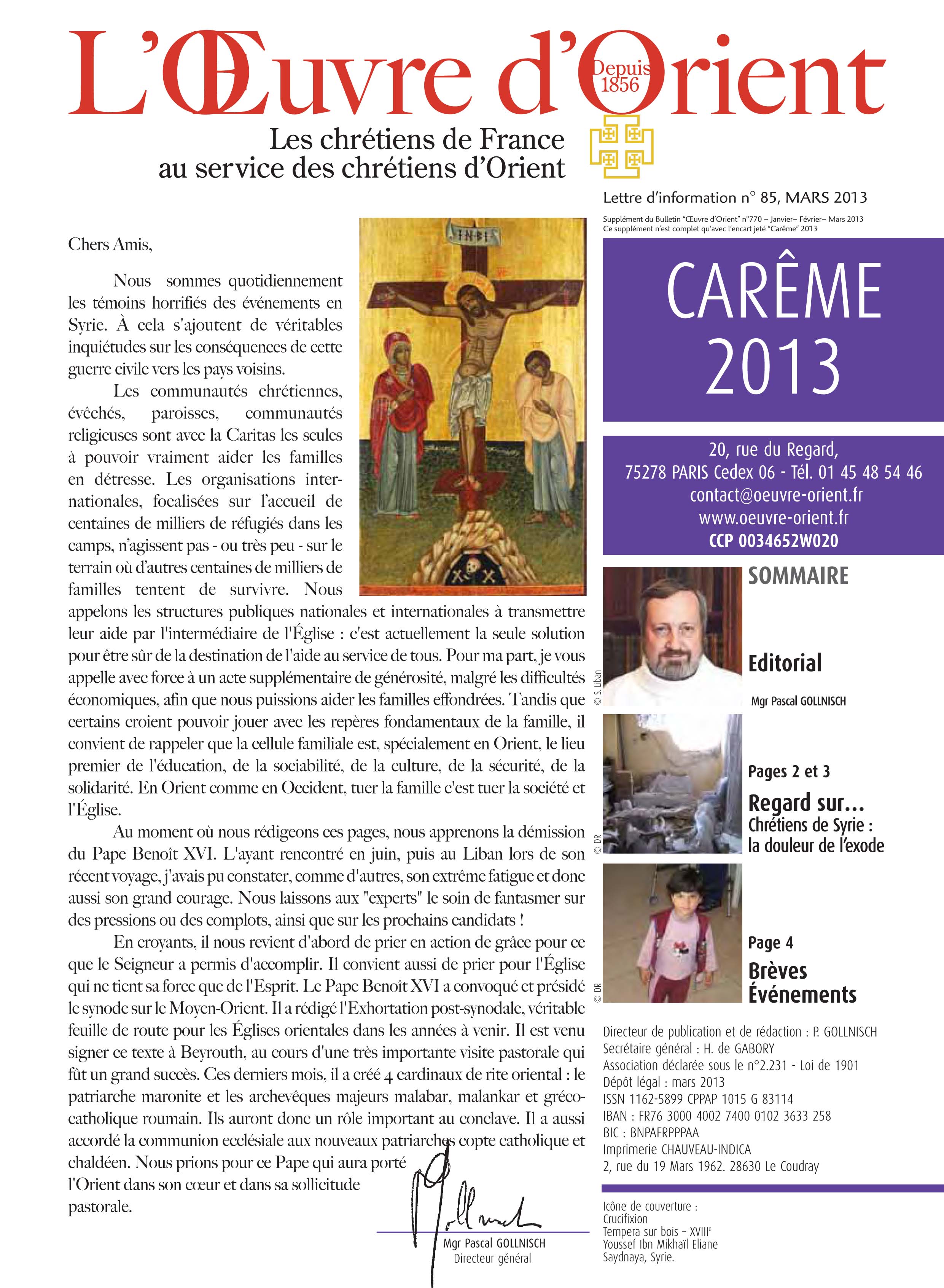 Oeuvre d'Orient : Lettre d'Information Carême consacrée à la Syrie