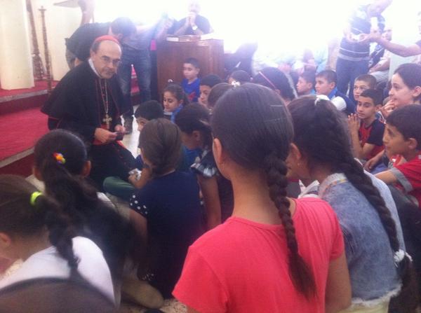 « Je prierai le Notre Père en araméen jusqu’à ce que vous soyez rentrés à Mossoul » a déclaré le Cardinal Barbarin. Récité avec les enfants, le Notre Père a résonné en araméen avec les enfants exilés de Mossoul.