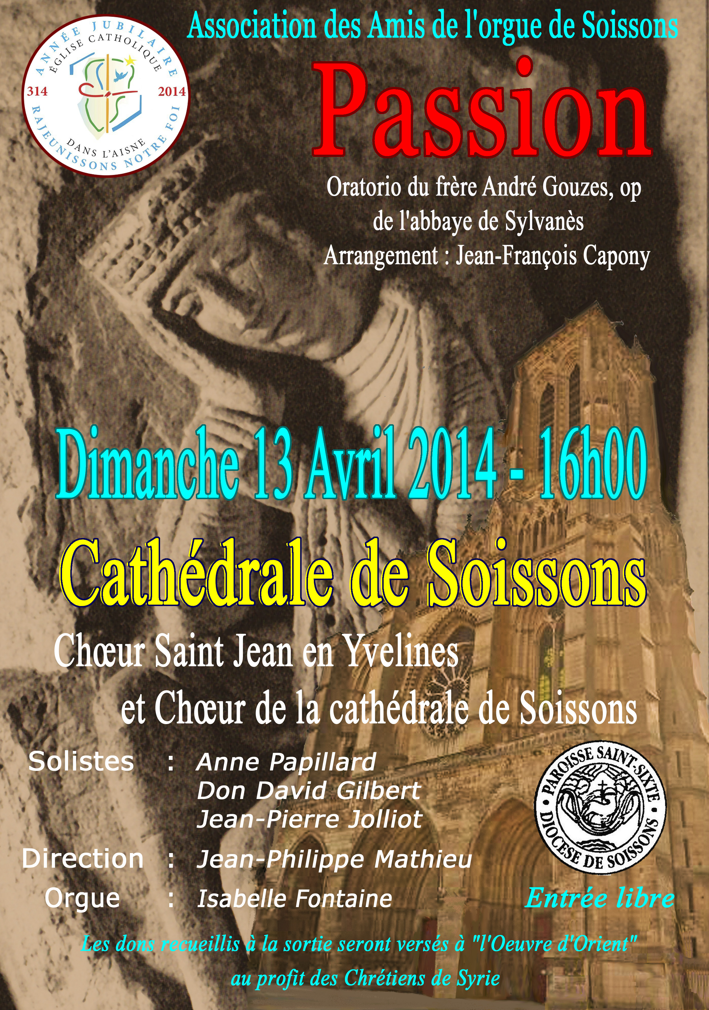 Soissons : Passion Oratorio du frère André Gouzes, op, Dimanche 13 avril