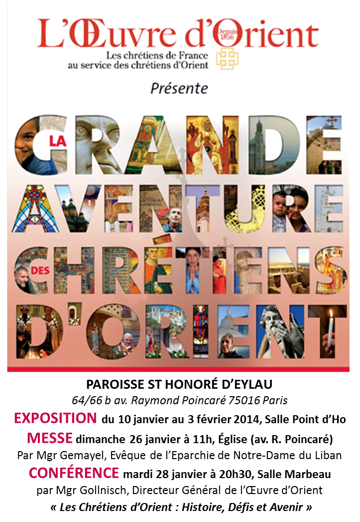 St Honoré d'Eylau, Paris : Conférence, Messe & Exposition La Grande Aventure des chrétiens d'Orient