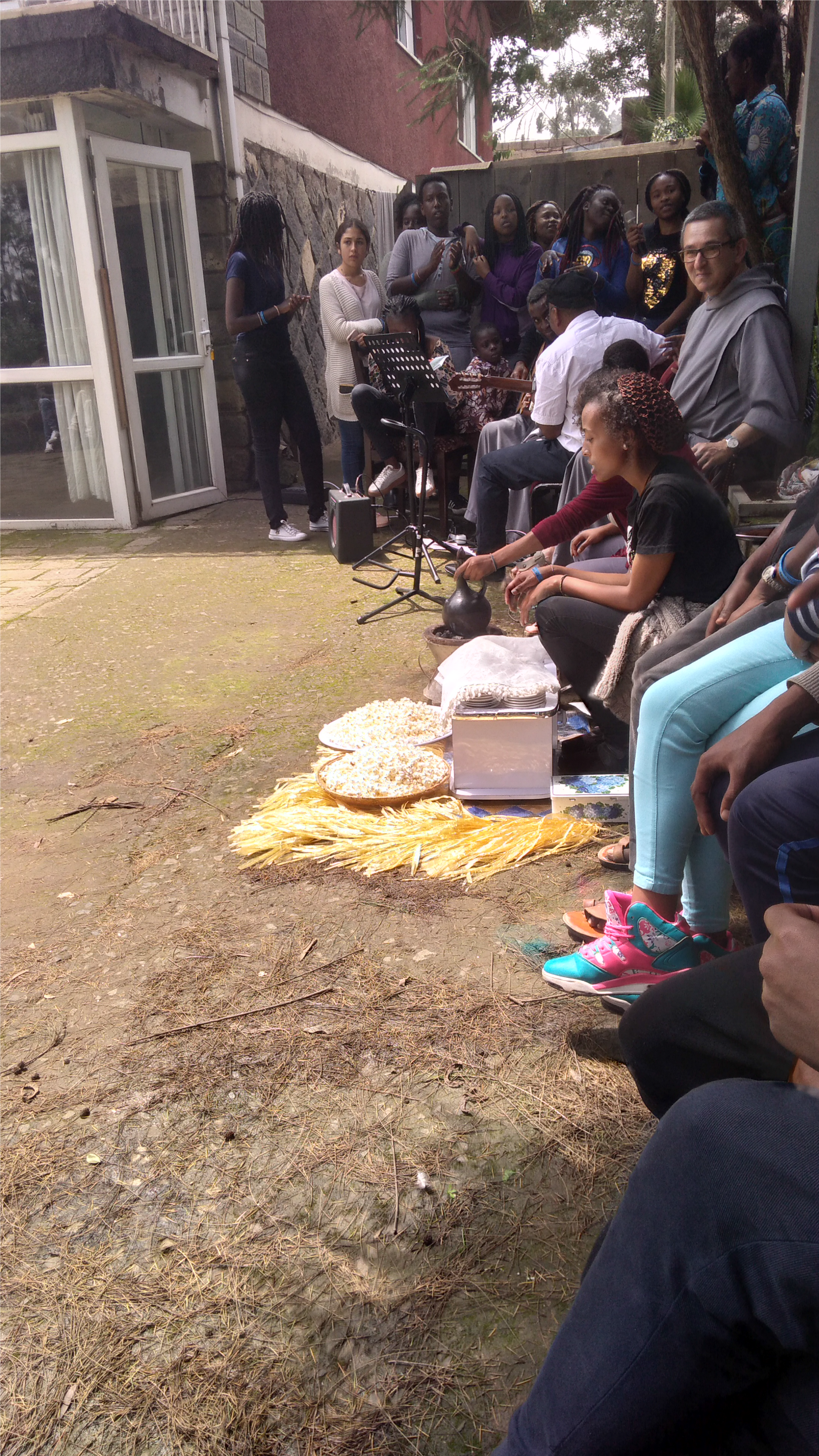 L’Ethiopie est un pays composé d’environ 50% de chrétiens. Cette fête est l’une des plus importantes chez eux. Nous sommes donc sortis célébrer cette fête avec les frères de Saint Jean, chez qui j’effectue ce temps de volontariat. Nous sommes allés chez les sœurs de Mère Theresa, qui avaient préparé un grand feu. Je dirais que jusque-là tout se déroulait comme toute fête chrétienne peut se dérouler. Ce qui m’a étonné, c’est qu’en rentrant chez nous à pieds, partout dans la rue il y avait des feux et des gens qui célébraient. En nous arrêtant devant un de ces feux, un éthiopien chrétien est venu m’expliquer ce que représentait ce feu et m’a parlé de sa foi et de ses croyances.