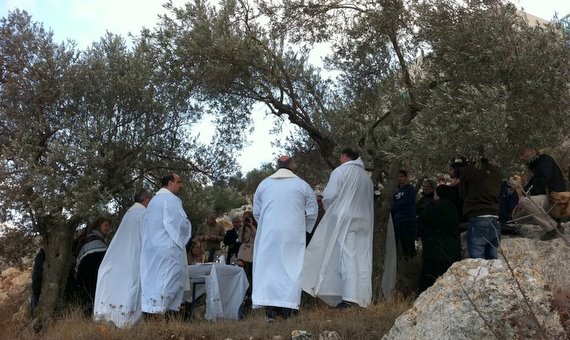 La messe a été célébrée dans un champs d’oliviers qui seront peut-être coupés et déracinés. Comme le rappelle le Père Mario Cornioli, les olives ont été les témoins silencieux de la souffrance et de l’agonie de Jésus à Gethsémani. Ainsi, ces paroissiens de Beit Jala attachés à leur terre et à leurs oliviers se retrouveront tous les vendredis sur ce « Gethésménai » où ils continuent de vivre dans la crainte, mais aussi dans l’espérance que leurs terres leurs soient toujours accordées…